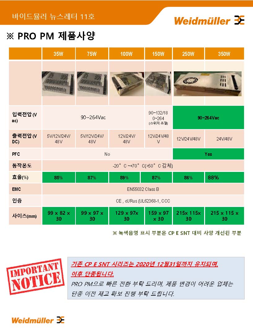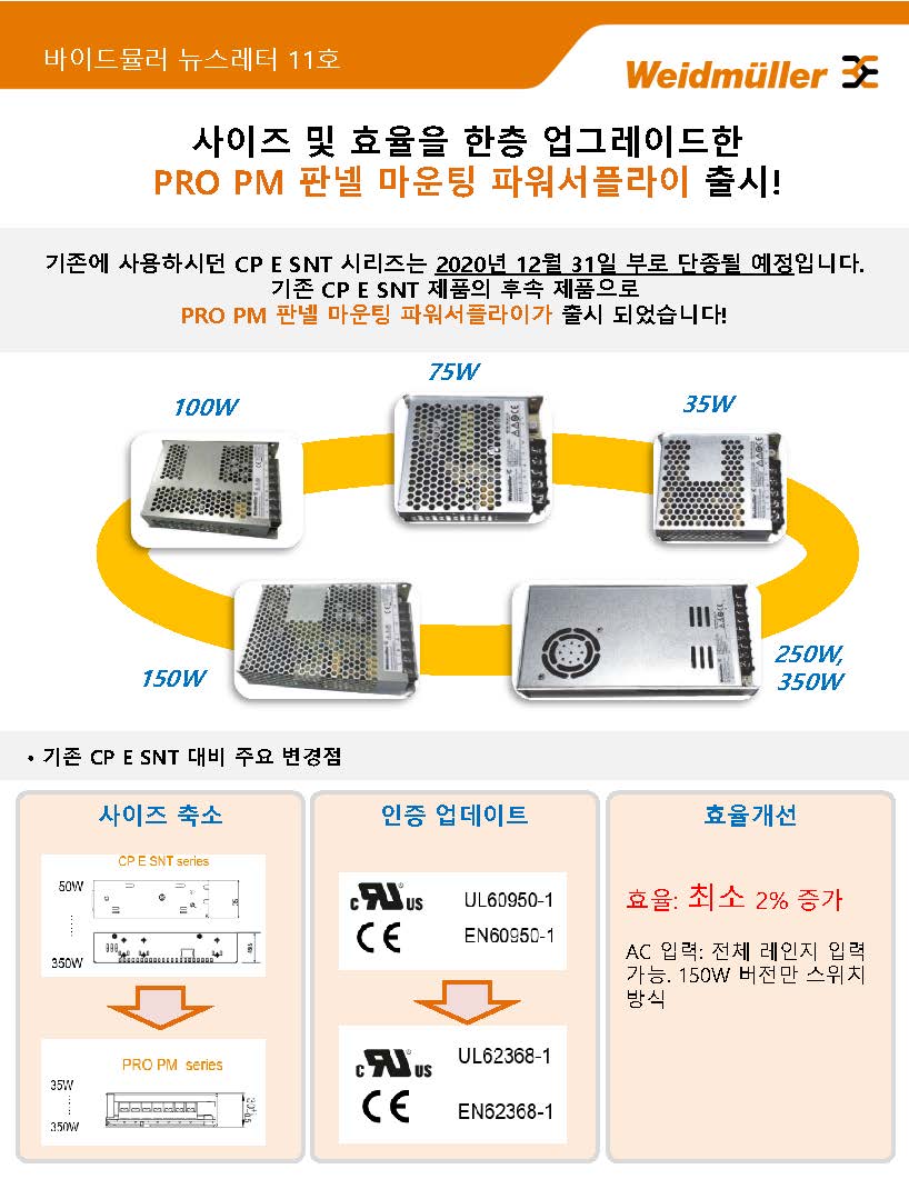 새로 공급되는 PRO PM 모델은 기존 중저가형 판넬 마운팅 파워서플라이 CP E SNT (PRO_E)에서 사이즈와 효율 등이 개선된 제품으로,